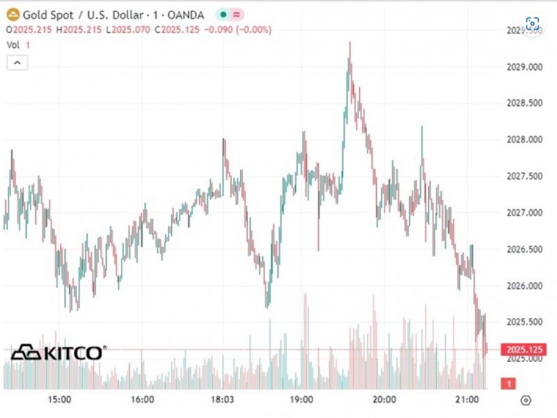 Đóng cửa phiên ngày thứ hai tại thị trường New York, giá vàng giao ngay tăng 6,1 USD/oz, tương đương tăng 0,3%, chốt ở mức 2.027 USD/oz - theo dữ liệu từ sàn giao dịch Kitco. Lúc gần 9h sáng nay theo giờ Việt Nam, giá vàng giao ngay tại thị trường châu Á giảm 0,2 USD/oz so với đóng cửa phiên Mỹ, giao dịch ở mức 2.026,8 USD/oz.