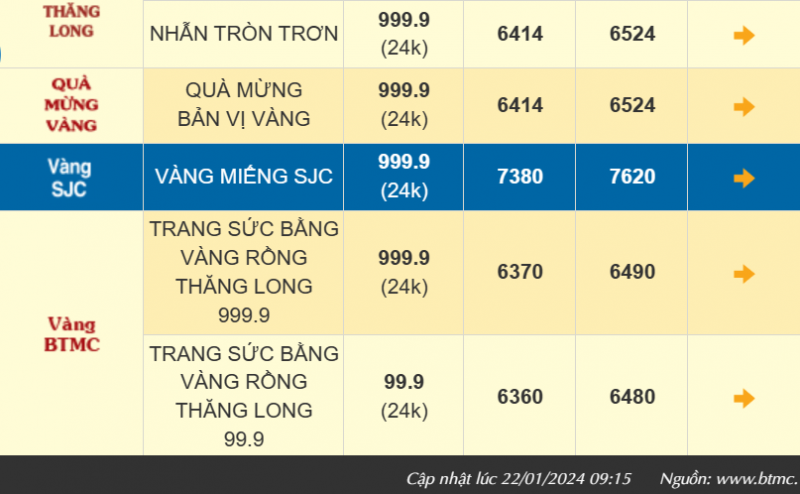 | Giá vàng giao dịch tại Công ty Bảo Tín Mạnh Hải |