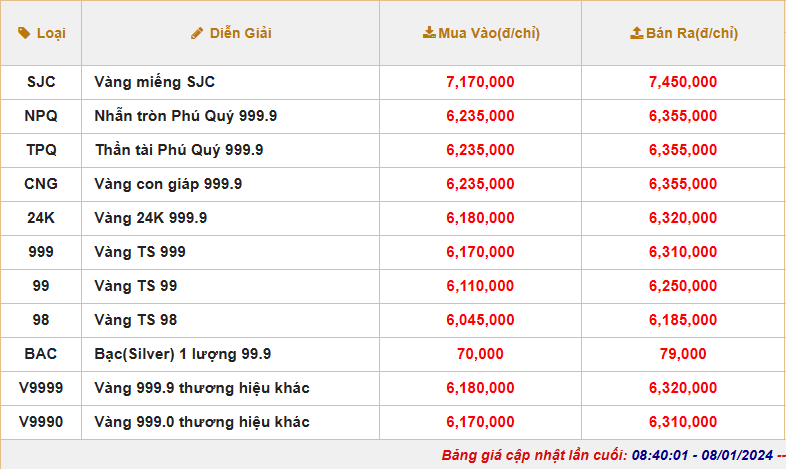 | Cập nhật giá vàng của Tập đoàn Phú Quý |