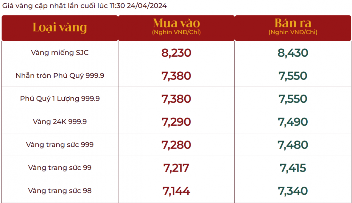 | Giá vàng giao dịch tại Tập đoàn Phú Quý |