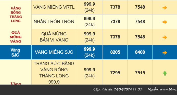 | Giá vàng giao dịch tại Bảo Tín Mạnh Hải |