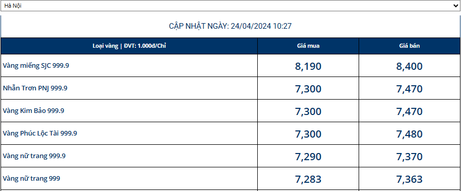 | Giá vàng giao dịch tại Công ty CP Vàng Bạc Đá Quý Phú Nhuận |