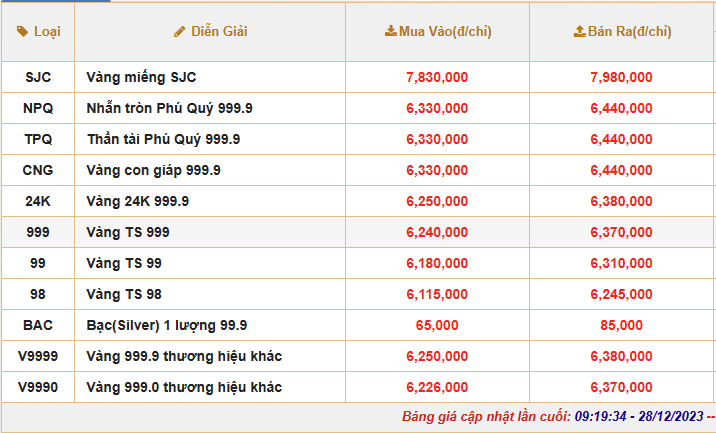 | Cập nhật giá vàng của Tập đoàn Phú Quý |