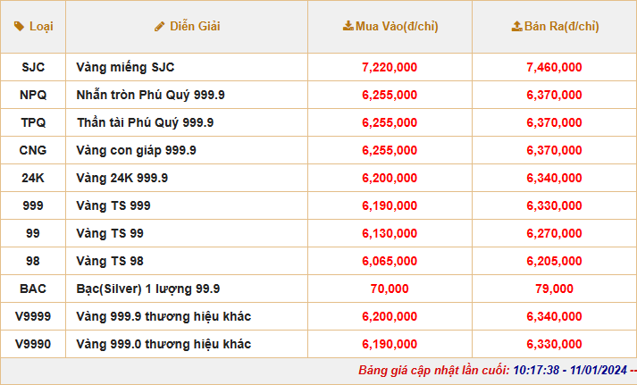| Cập nhật giá vàng của Tập đoàn Phú Quý |
