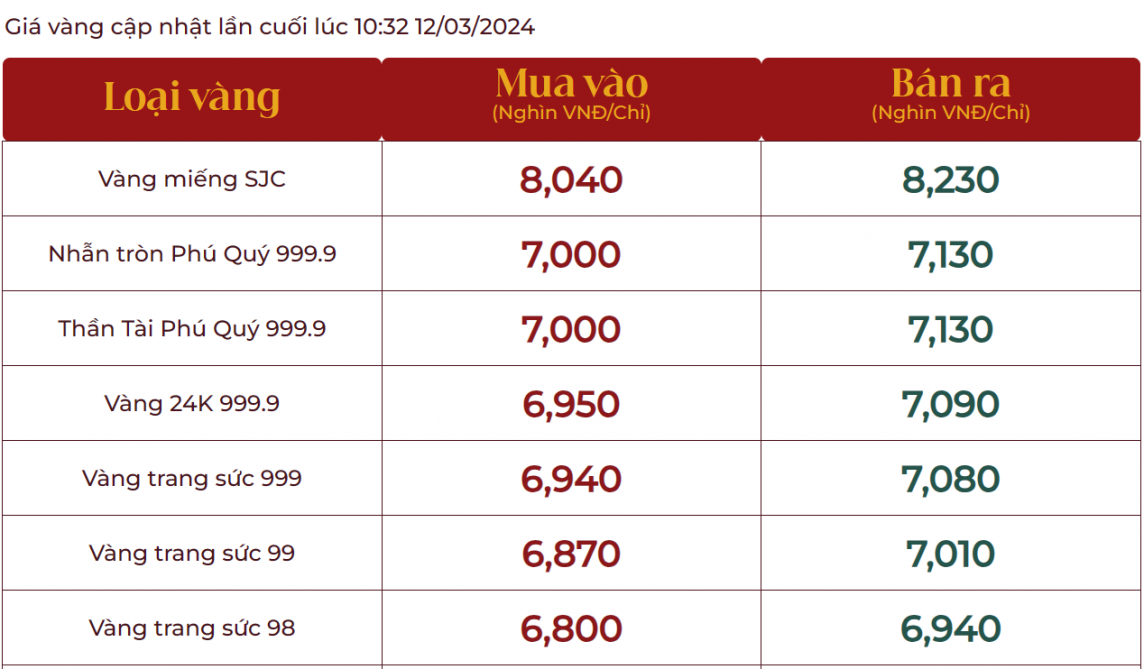 | Giá vàng giao dịch tại Tập đoàn Phú Quý |