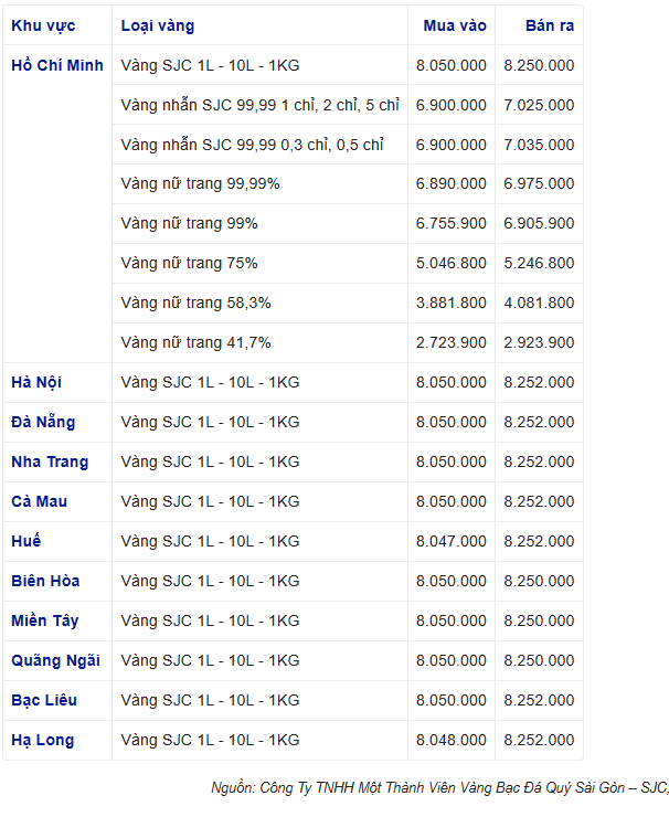 Giá tại Công ty Vàng bạc đá quý Sài Gòn khu vực Hà Nội quanh mức 80,50 - 82,52 triệu đồng/lượng, tăng 150 ngàn đồng/lượng chiều mua và tăng 150 ngàn đồng/lượng chiều bán so với chốt phiên hôm qua. Chênh lệch mua - bán thu hẹp còn 2 triệu đồng/lượng.