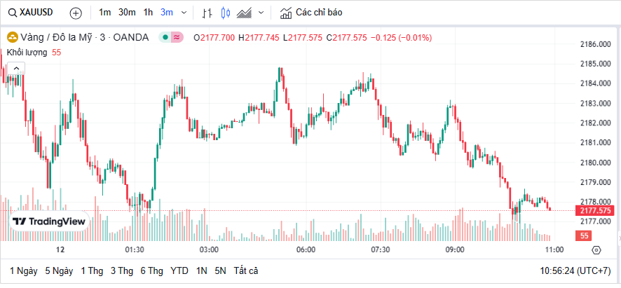 Thị trường thế giới thời điểm trưa ngày 12/3 theo giờ Việt Nam, giá vàng thế giới đứng ở mức 2.177 USD/ounce, tăng nhẹ 1 USD/ounce so với cùng giờ sáng qua. Quy đổi theo tỷ giá ngân hàng chưa kể thuế, phí, giá vàng thế giới rơi vào khoảng 64,2 triệu đồng/lượng, thấp hơn vàng SJC bán ra khoảng 18 triệu đồng/lượng.