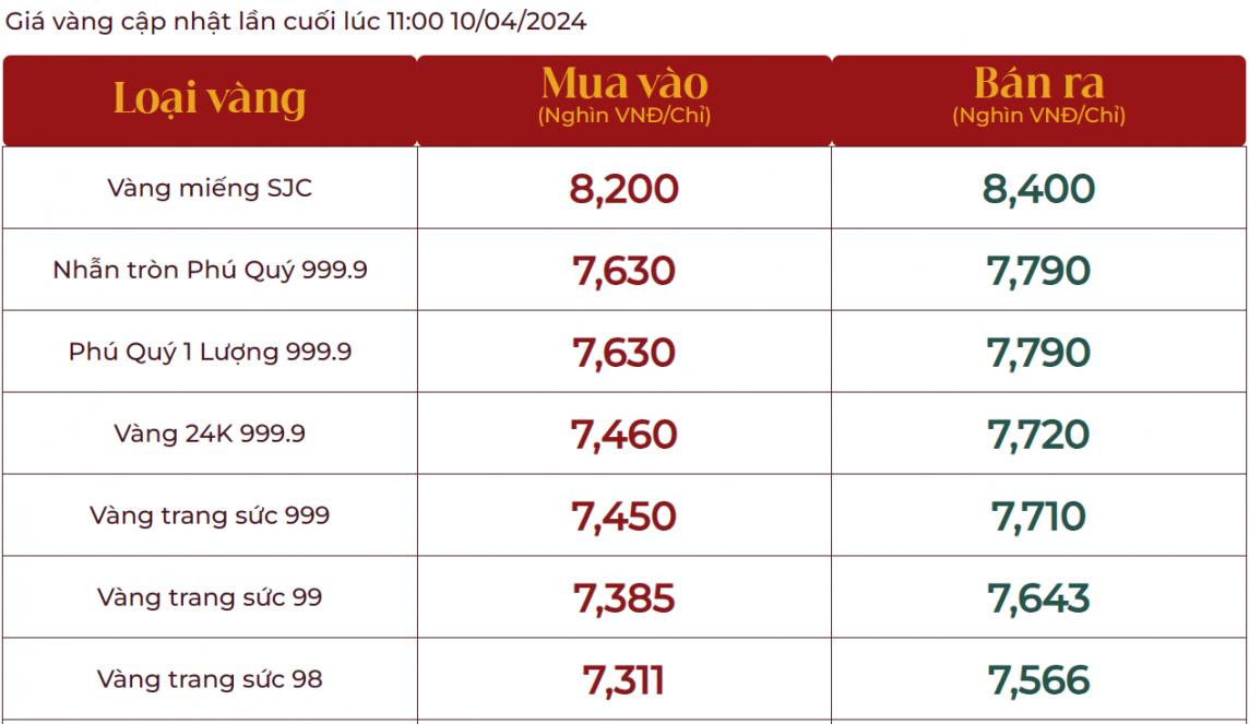 | Giá vàng giao dịch tại Tập đoàn Phú Quý |