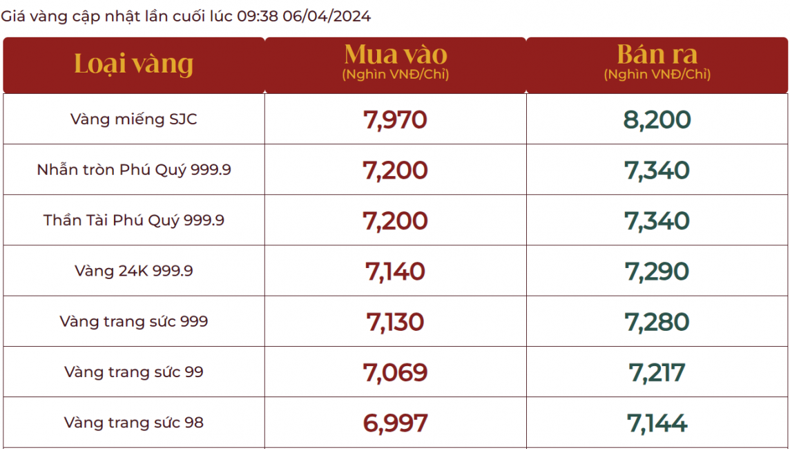 | Giá vàng giao dịch tại Tập đoàn Phú Quý |