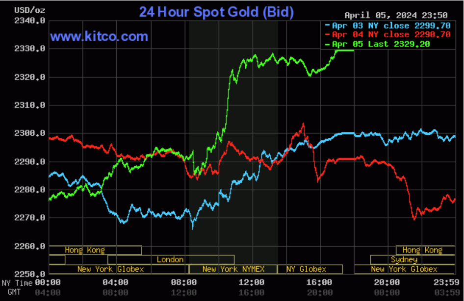 Giá vàng tăng sốc khi hoạt động mua đầu cơ và sức mua của các ngân hàng trung ương gia tăng, bất chấp tăng trưởng việc làm mạnh mẽ của Mỹ trong tháng 3 và chỉ số đồng USD cũng tăng.