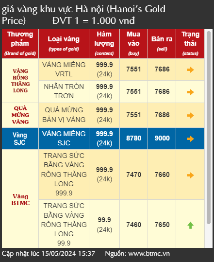 Ngày hôm qua (14/5), Ngân hàng Nhà nước đã tổ chức đấu giá thành công 81 lô vàng miếng SJC tương đương 8.100 lượng vàng với tổng số thành viên trúng thầu là 8 thành viên. Giá trúng thầu cao nhất là 87,73 triệu đồng/lượng, giá trúng thầu thấp nhất là 87,72 triệu đồng/lượng. Việc đấu giá vàng miếng nhằm can thiệp kịp thời, xử lý tình trạng giá vàng miếng trong nước và giá vàng thế giới chênh lệch ở mức cao, bảo đảm thị trường vàng hoạt động ổn định, lành mạnh, công khai, minh bạch, hiệu quả, theo đúng chỉ đạo của Thủ tướng Chính phủ.