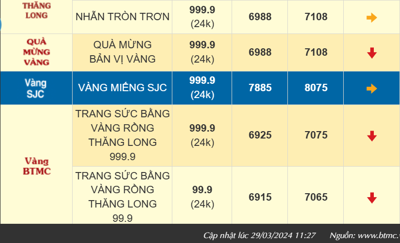 | Giá vàng giao dịch tại Bảo Tín Mạnh Hải |