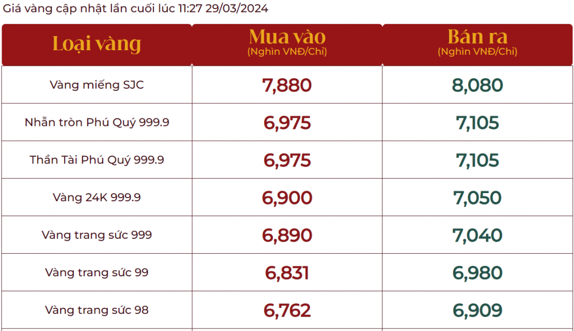 | Giá vàng giao dịch tại Tập đoàn Phú Quý |