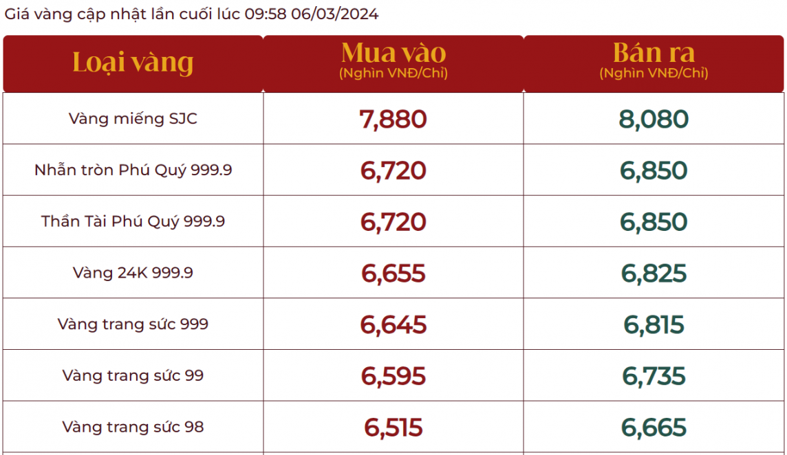 | Giá vàng giao dịch tại Tập đoàn Phú Quý |