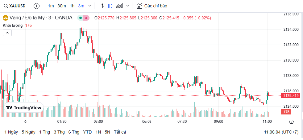 | Biểu đồ giá vàng thế giới trưa nay |