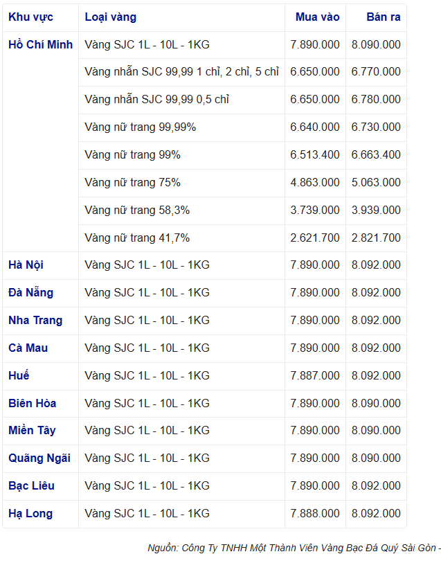 Giá vàng miếng SJC giao dịch tại Công ty Vàng bạc đá quý Sài Gòn khu vực Hà Nội quanh mức 78,90 - 80,92 triệu đồng/lượng, tăng 400 ngàn đồng/lượng chiều mua và tăng 400 ngàn đồng/lượng chiều bán so với chốt phiên hôm qua. Chênh lệch mua - bán lên đến 2 triệu đồng/lượng.