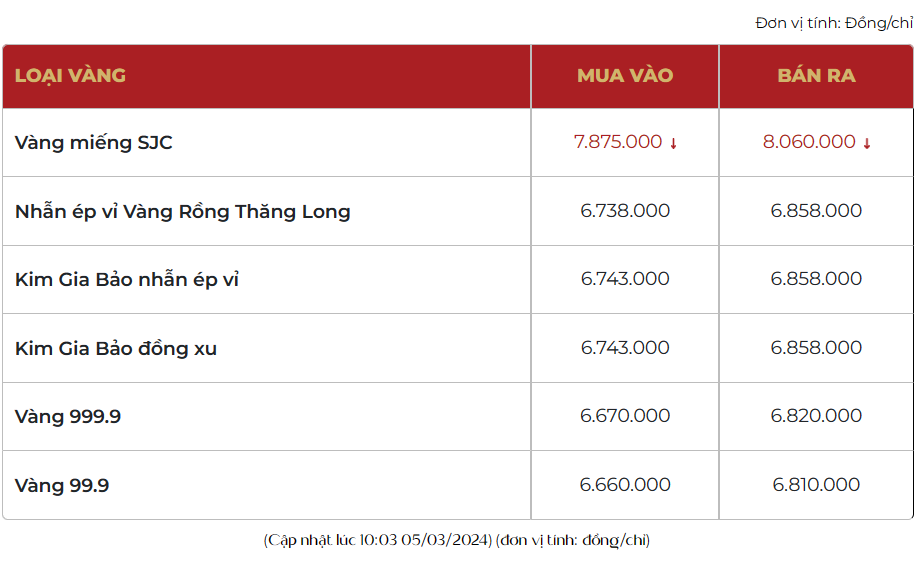 | Giá vàng giao dịch tại Bảo Tín Minh Châu |