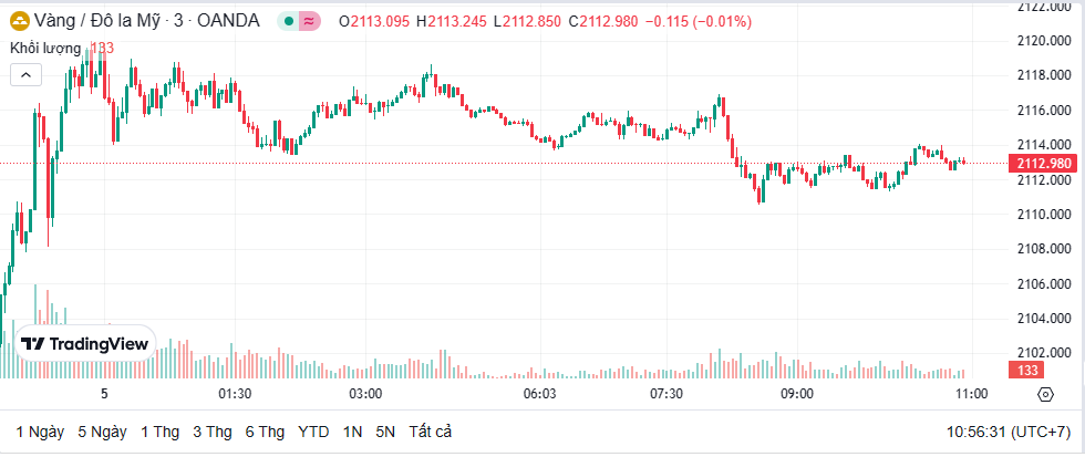 Theo Kitco, giá vàng thế giới ghi nhận trưa nay (ngày 5/3) theo giờ Việt Nam giao ngay ở mức 2.112 USD/ounce. Giá vàng hôm nay chênh lệch 35,165 USD/ounce so với giá vàng ngày hôm qua.