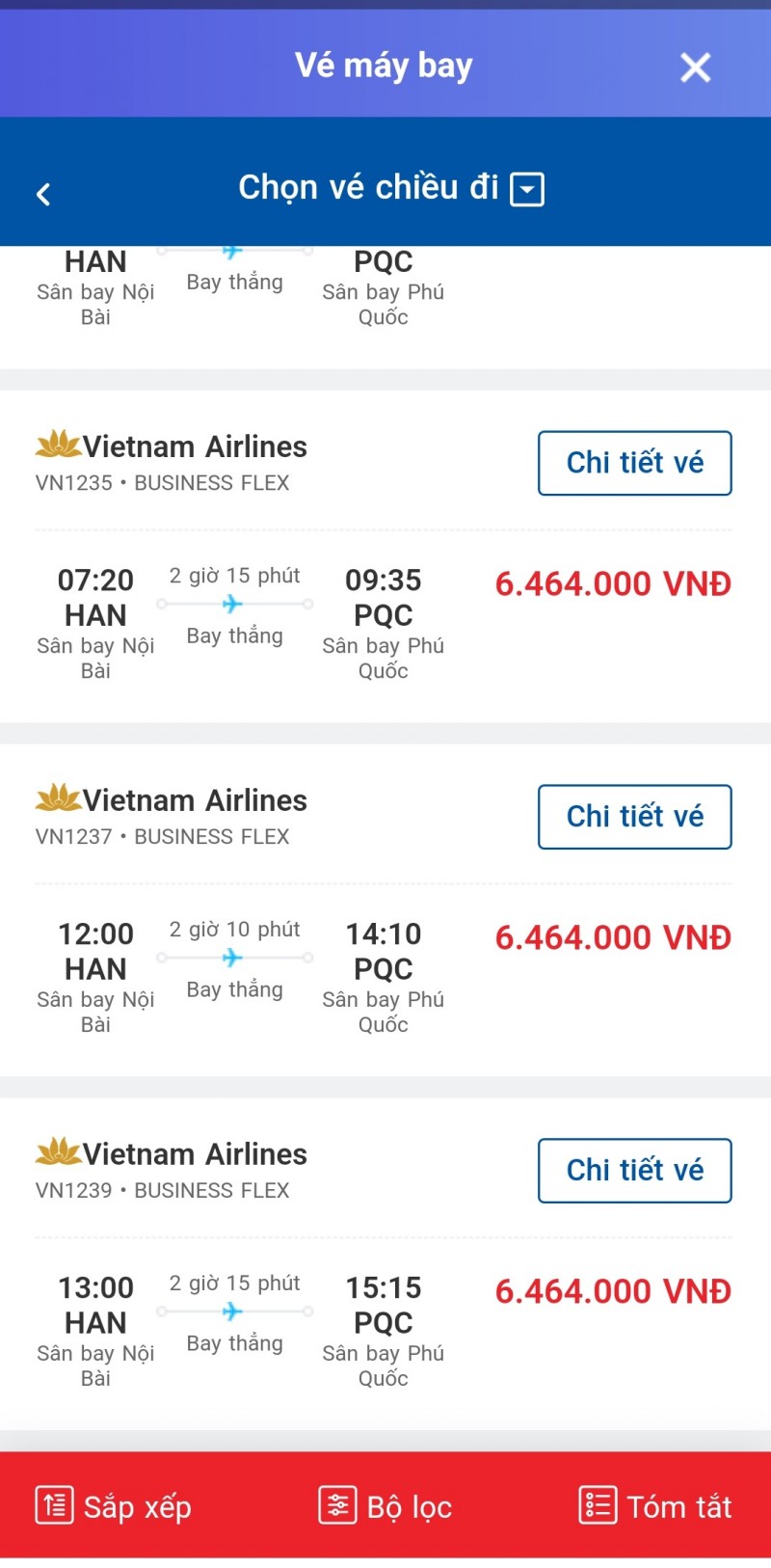 | Ngày 30/4, vé máy bay hạng thương gia từ Hà Nội đi Phú Quốc gần 6,5 triệu đồng/chiều đi |