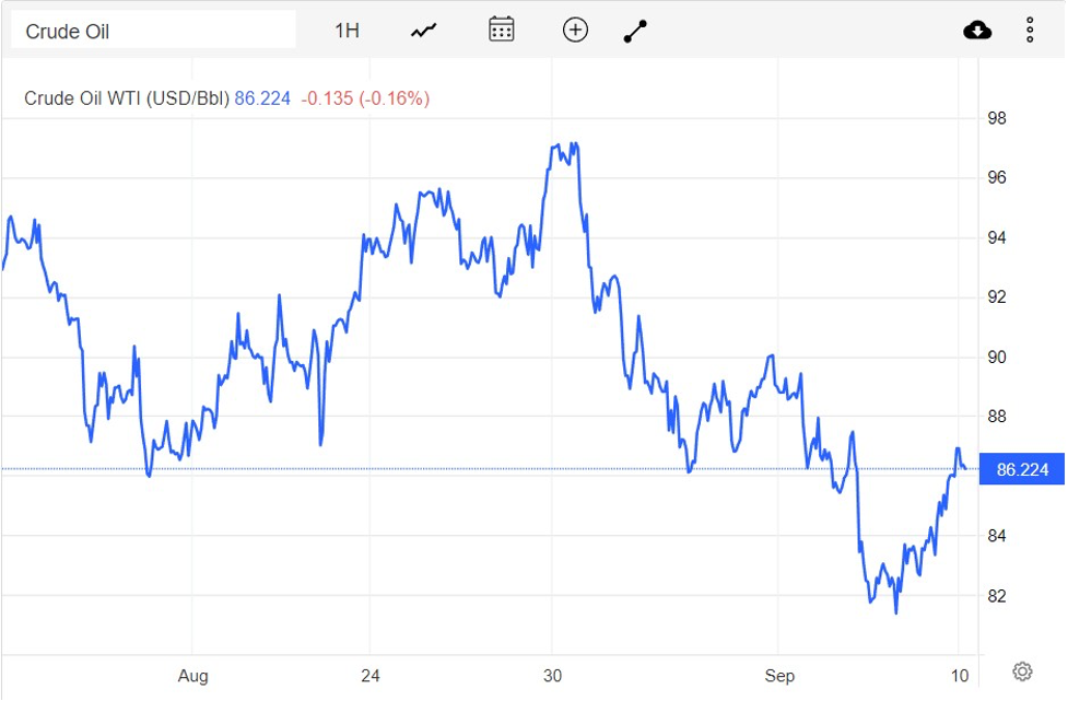 | Giá dầu WTI trên thị trường thế giới vào sáng 11/9 (theo giờ Việt Nam) |