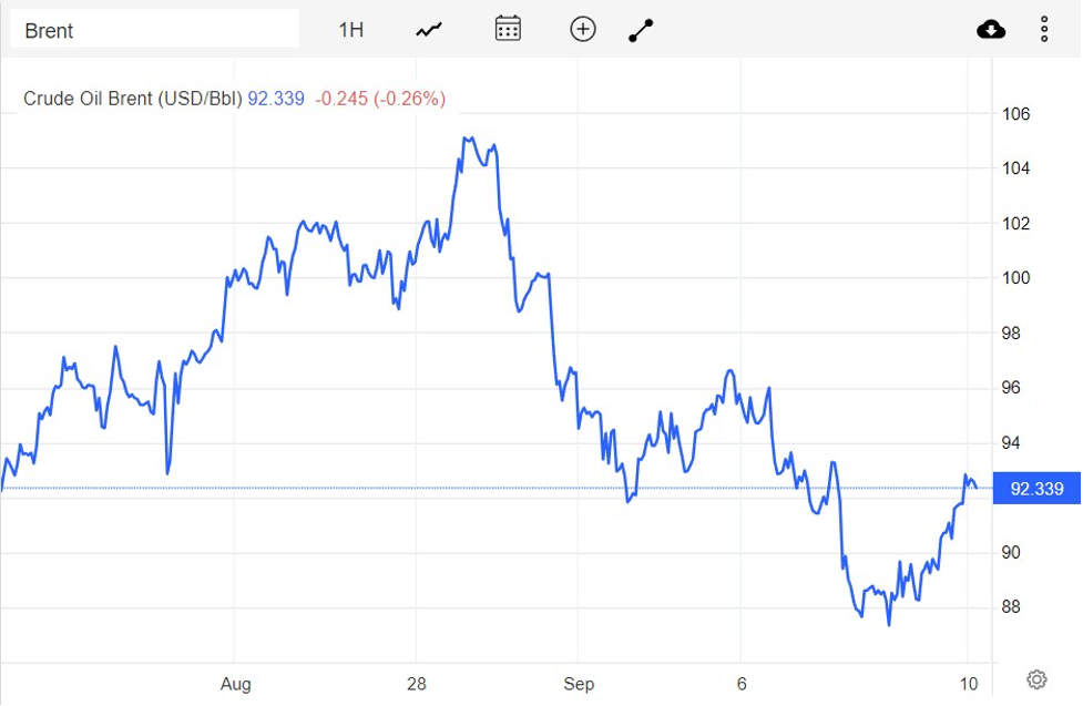 | Diễn biến giá dầu Brent trên thị trường thế giới vào sáng 11/9 (theo giờ Việt Nam) |