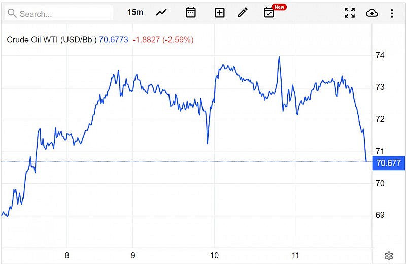 Giá dầu sáng ngày 12/5 (theo giờ Việt Nam) cụ thể là: giá dầu thô WTI của Mỹ giảm 1,73 USD xuống mức 70,68 USD/thùng, giá dầu Brent giảm 1,62 USD, xuống mức 74,69 USD/thùng.