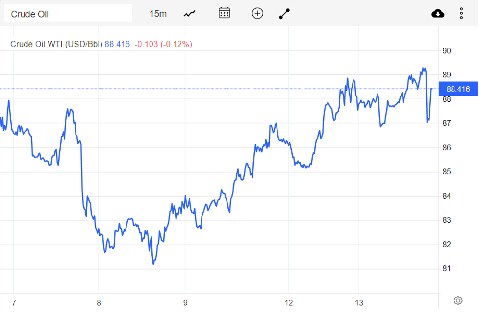 Giá dầu thô tăng do lo ngại về nguồn cung nhiên liệu thắt chặt trước mùa đông tại châu Âu và nhu cầu giảm ở Trung Quốc, nước nhập khẩu dầu thô lớn nhất thế giới. Việc giới hạn mức tăng đối với giá dầu đã làm dấy lên lo ngại về nhu cầu nhiên liệu toàn cầu giảm khi Trung Quốc tiếp tục áp đặt các chính sách chống Covid-19.