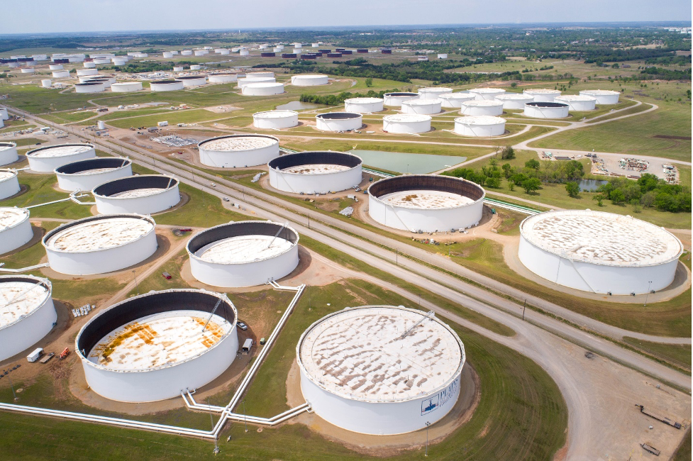 | Các bồn chứa dầu thô tại trung tâm dầu khí Cushing, Oklahoma, Hoa Kỳ (nguồn: Reuters) |