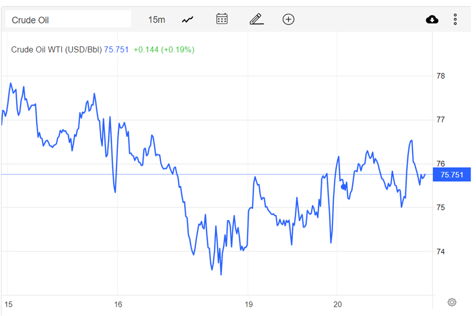 Giá dầu thế giới được ghi nhận vào sáng ngày 21/12 (theo giờ Việt Nam) cụ thể như sau: Dầu thô WTI của Mỹ tăng 0,14 USD, lên mức 75,75 USD/thùng, trong khi giá dầu Brent tăng 0,2 USD, lên 79,86 USD/thùng.