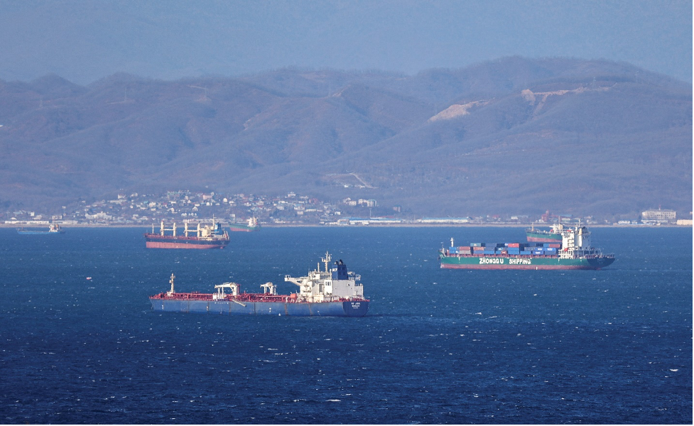 Tàu chở hàng ở vịnh Nakhodka gần thành phố cảng Nakhodka, Nga (ảnh: Reuters) |