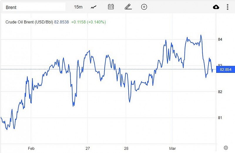 | Diễn biến giá dầu Brent trên thị trường thế giới sáng2/3 (theo giờ Việt Nam) |