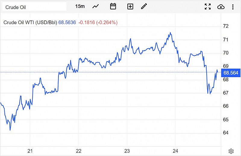 Giá dầu thế giới vào sáng ngày 25/3 (theo giờ Việt Nam) như sau: giá dầu thô WTIgiảm 2,61 USD, xuống mức68,56 USD/thùng, trong khi giádầu Brenttăng 2,47 USD,xuống mức 74,44 USD/thùng.