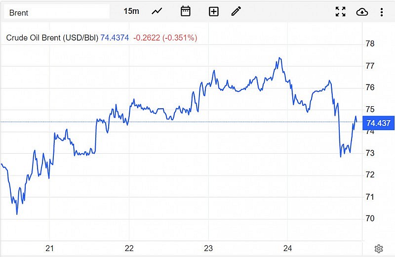 | Diễn biến giá dầu Brent trên thị trường thế giới vào sáng 25/3 (giờ Việt Nam) |