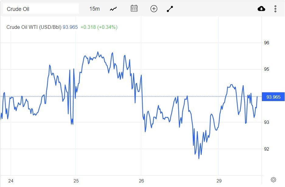 Giá dầu thế giới được ghi nhận vào sáng ngày 30/8 (theo giờ Việt Nam) cụ thể là: Dầu thô WTI của Mỹ tăng 1,16 USD, lên mức 93,97 USD/thùng, trong khi giá dầu Brent giao tháng 10 tăng 1,02 USD, lên mức 101,58 USD/thùng.