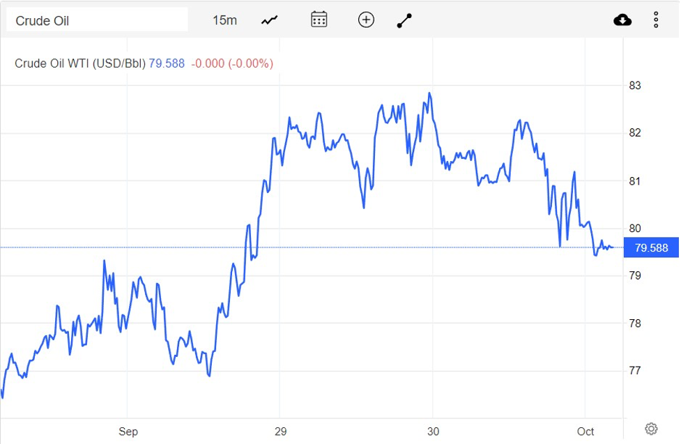| Giá dầu WTI trên thị trường thế giới vào sáng 3/10 (theo giờ Việt Nam) |