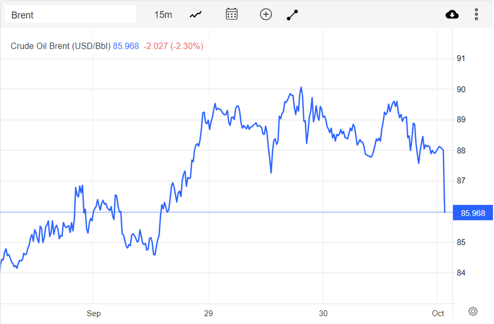 | Diễn biến giá dầu Brent trên thị trường thế giới vào sáng 3/10 (theo giờ Việt Nam) |