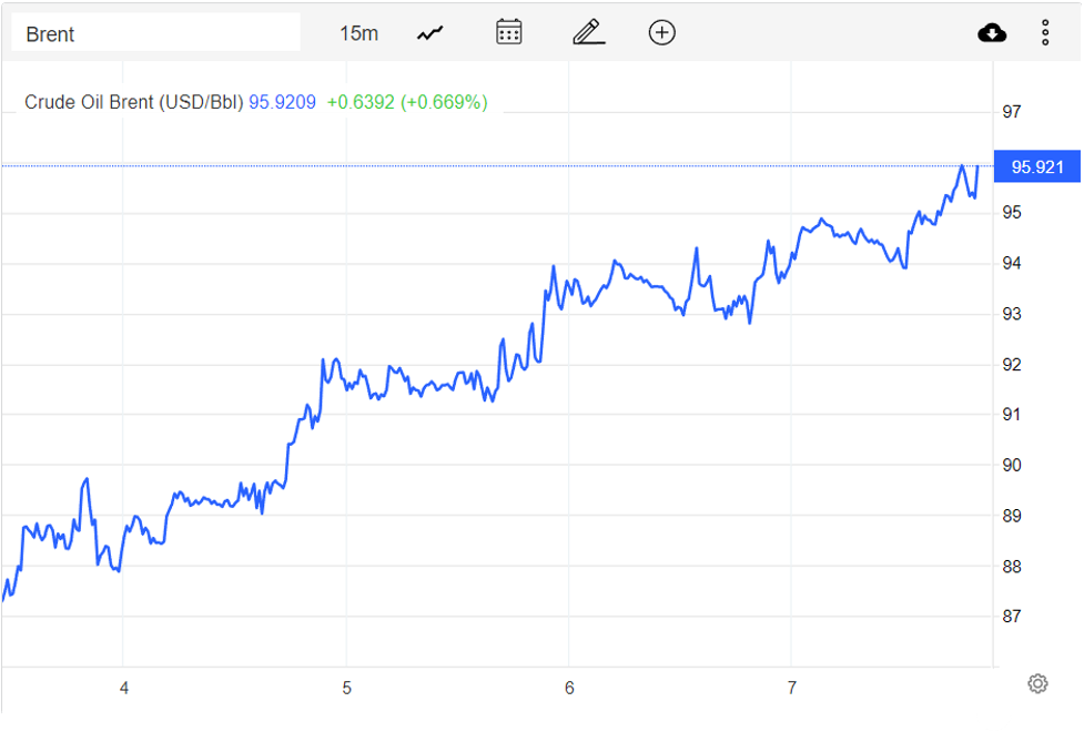 | Giá xăng dầu hôm nay 8/10: Tăng thêm hơn 2 USD, dầu Brent đạt 95,92 USD/thùng |