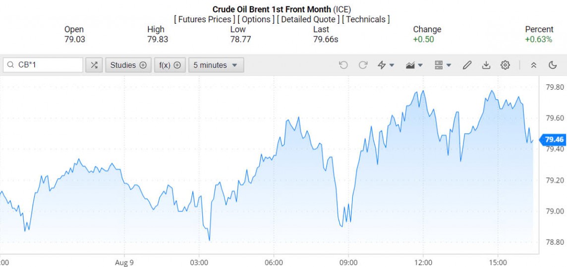 Tương tự, giá dầu Brent ở mốc 79,46 USD/thùng, tăng 0,63% (tương đương tăng 0,50 USD/thùng).
