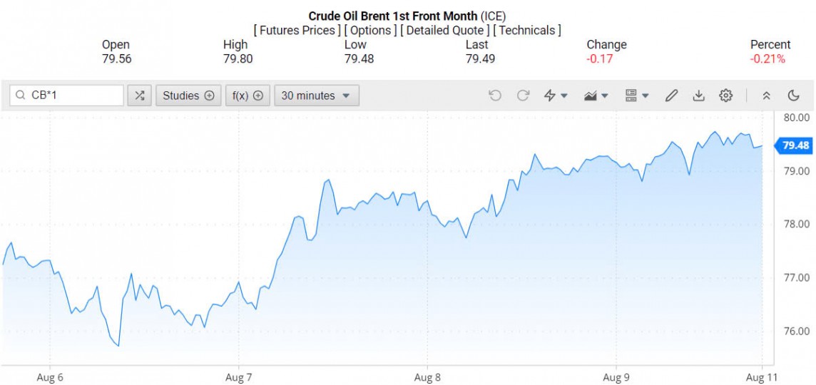 | Giá dầu Brent trên thị trường thế giới rạng sáng 12/8 (theo giờ Việt Nam) |