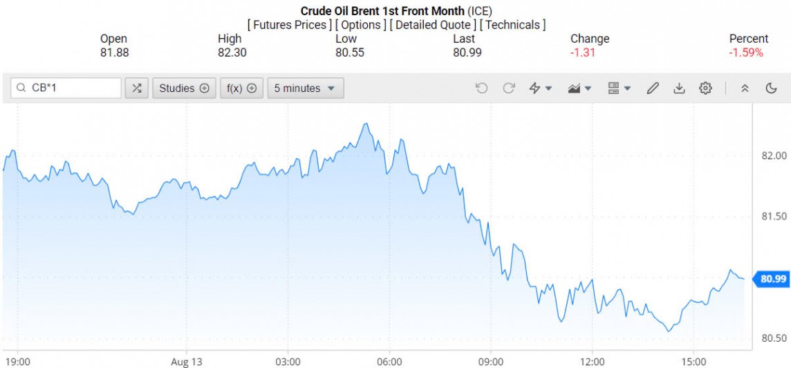 Tương tự, giá dầu Brent ở mốc 80,99 USD/thùng, giảm 1,59% (tương đương giảm 1,31 USD/thùng).
