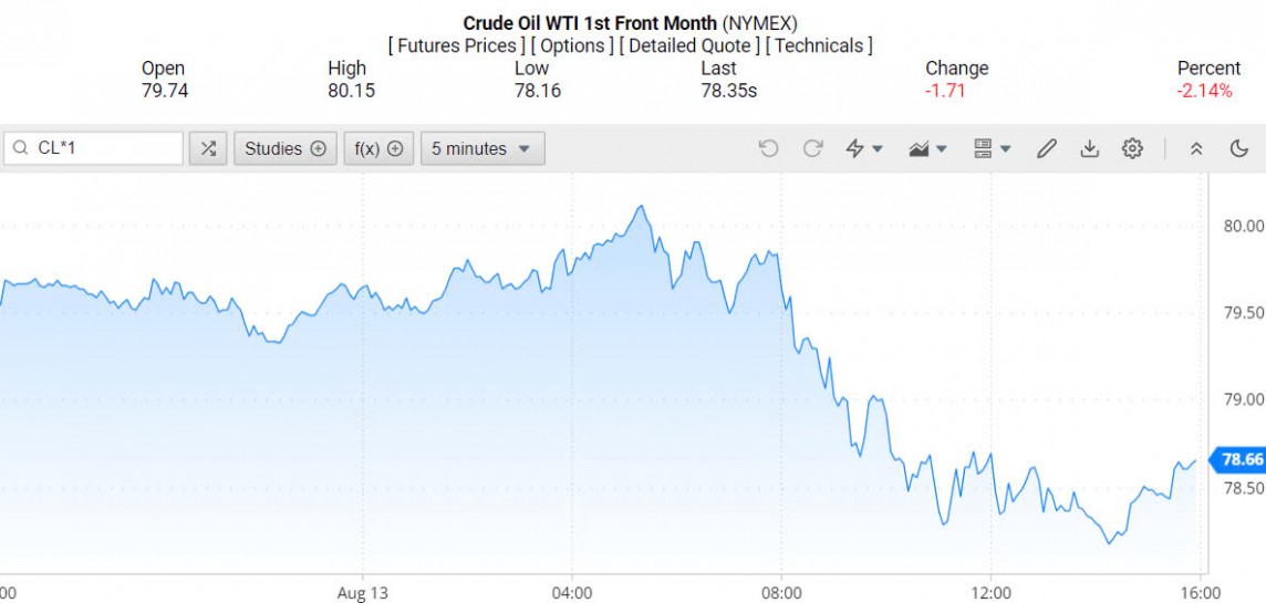 Ghi nhận trên Oilprice lúc 5h ngày 14/8/2024 (theo giờ Việt Nam), giá dầu WTI ở mốc 78,66 USD/thùng, giảm 2,14% (tương đương giảm 1,71 USD/thùng).
