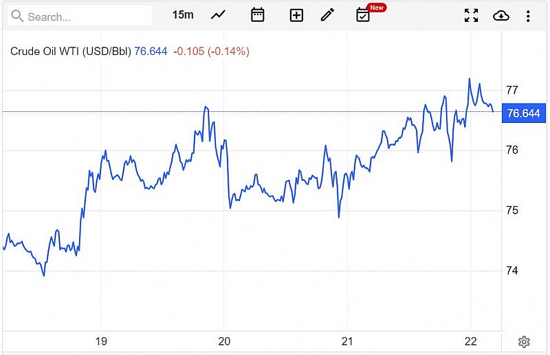 Giá dầu sáng ngày 23/7/2023 (theo giờ Việt Nam) cụ thể là: giá dầu thô WTI của Mỹ giảm 0,2 USD, xuống mức 76,64 USD, Giá dầu Brentgiảm 0,03 USD, giảm mức 80,61 USD/thùng.