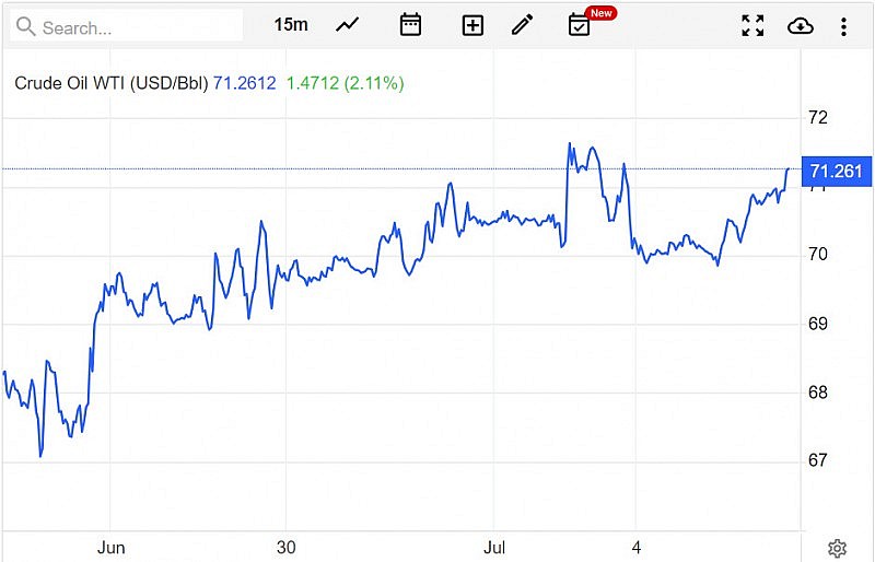 | Diễn biến giá dầu WTI trên thị trường thế giới rạng sáng 5/7 (theo giờ Việt Nam) |