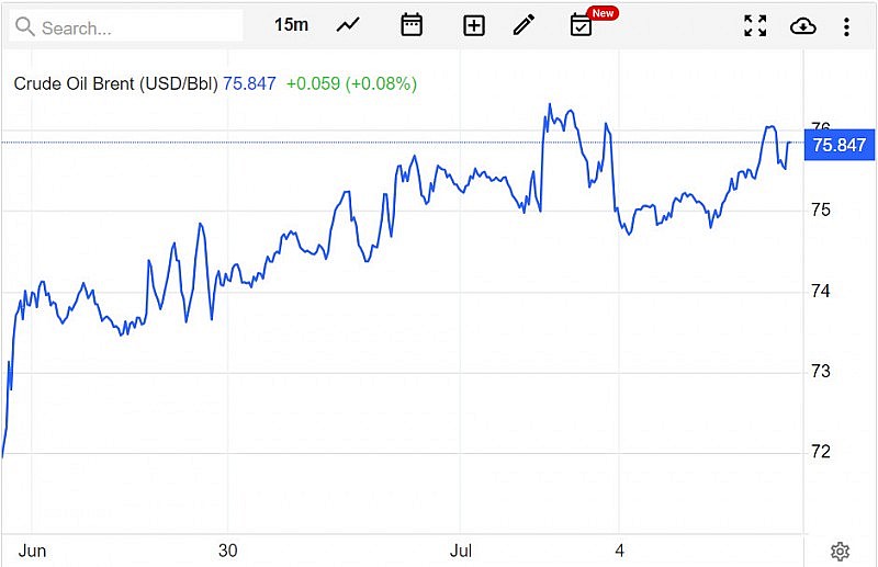 | Diễn biến giá dầu Brent trên thị trường thế giới rạng sáng 5/7 (theo giờ Việt Nam) |