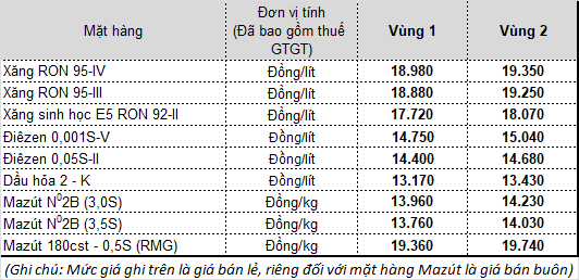 Dầu hỏa có giá bán tối đa là 13.173 đồng/lít. Nếu không chi Quỹ BOG 600 đồng/lít thì giá sẽ tăng 1.163 đồng/lít; còn dầu mazut là 13.769 đồng/kg, nếu không chi quỹ 600 đồng/kg thì giá sẽ tăng 1.242 đồng/kg.