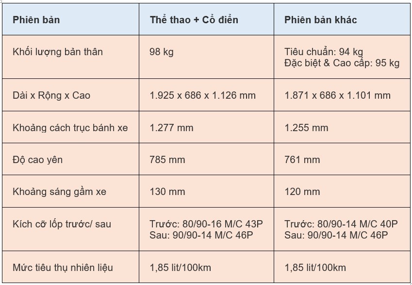 Độ cao yên | Phiên bản Thể thao: 785 mm |