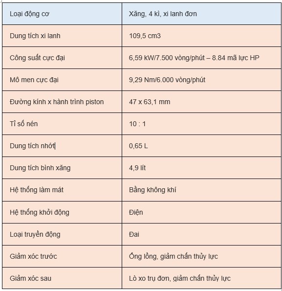 Bên cạnh sự khác biệt giữa các tính năng, các phiên bản của xe Honda Vision 2024 còn khác nhau rõ rệt về các thông số kỹ thuật.