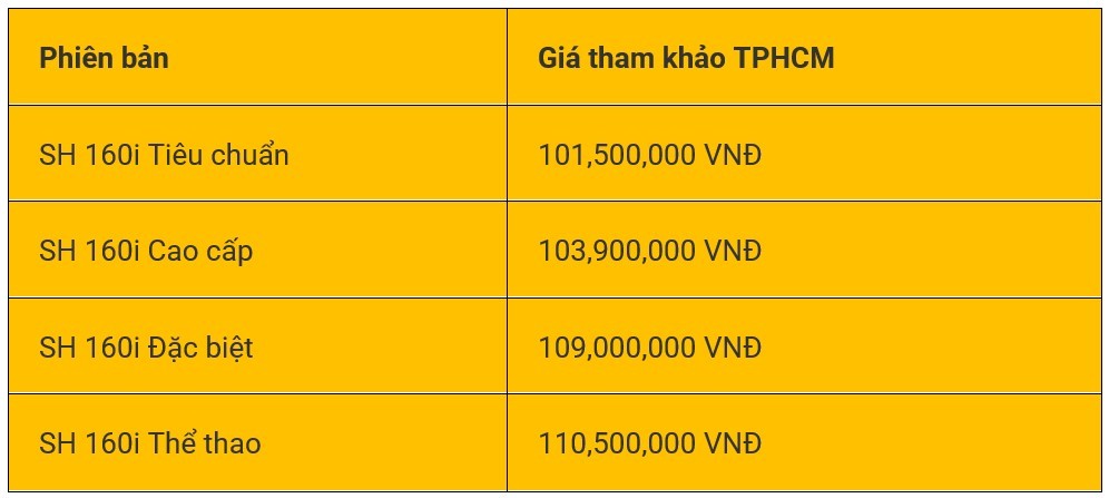 Do tình trạng thiếu hàng thường xuyên ở các phiên bản SH160i nên giá xe SH 2024 sẽ có nhiều mức và được trải dài từ 102 – 109 triệu đồng tại khu vực Hồ Chí Minh, Hà Nội.