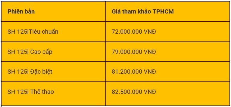 | Giá xe SH được tham khảo tại khu vực Hồ Chí Minh |