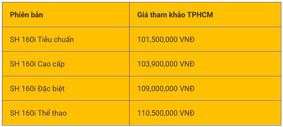 Do tình trạng thiếu hàng thường xuyên ở các phiên bản SH160i nên giá xe SH 2024 sẽ có nhiều mức và được trải dài từ 102 – 109 triệu đồng tại khu vực Hồ Chí Minh, Hà Nội.